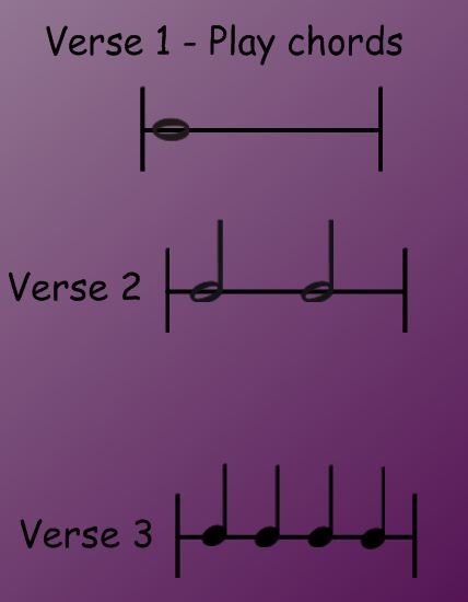 Verse 2 - play notes in the chord in each measure with the rhythm shown for every measure.